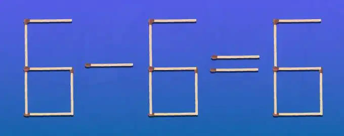 Ta klasyczna łamigłówka z zapałkami wymaga poprawienia błędnego równania 6-6=6, przesuwając tylko jedną zapałkę. Kluczem jest zauważenie, że zapałki mogą