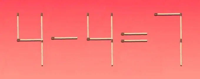 Przed tobą klasyczna łamigłówka z zapałkami: błędne równanie 4-4=7. Twoim zadaniem jest przesunięcie tylko jednej zapałki, aby stało się ono matematycznie poprawne.