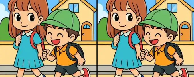 Dwa pozornie identyczne obrazki dzieci idących do szkoły skrywają trzy subtelne różnice. Czy potrafisz je wszystkie dostrzec w mniej niż minutę?