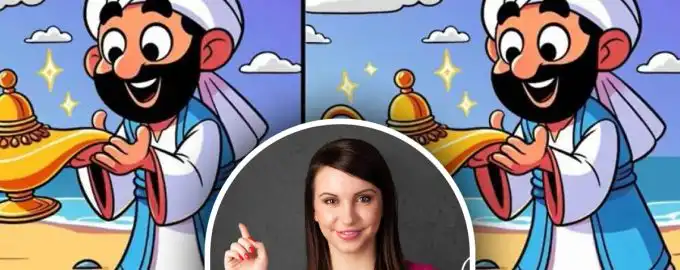 Przed tobą dwie ilustracze przedstawiające mężczyznę z lampą Aladyna. Wyglądają identycznie, ale to tylko pozory – ukryły się między nimi trzy subtelne różnice.