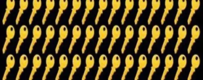Wśród wielu identycznych kluczy na obrazku ukryty jest jeden, który się od nich różni. Sekret tkwi w drobnym szczególe, a nie w oczywistej różnicy kształtu.