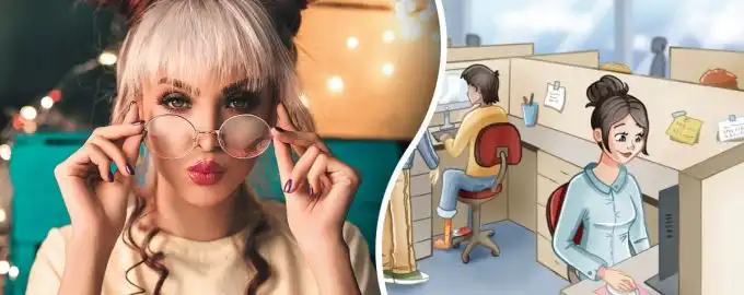 Na tym obrazku biura kryją się trzy subtelne, ale wyraźne błędy logiczne. Aby je znaleźć, musisz przełączyć swoje myślenie z ogólnego oglądania na analizę